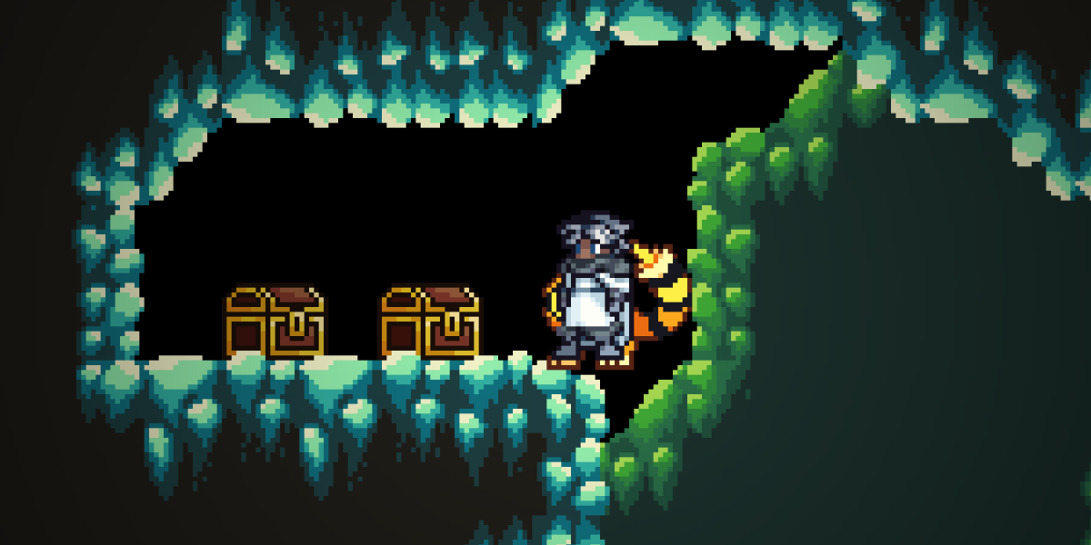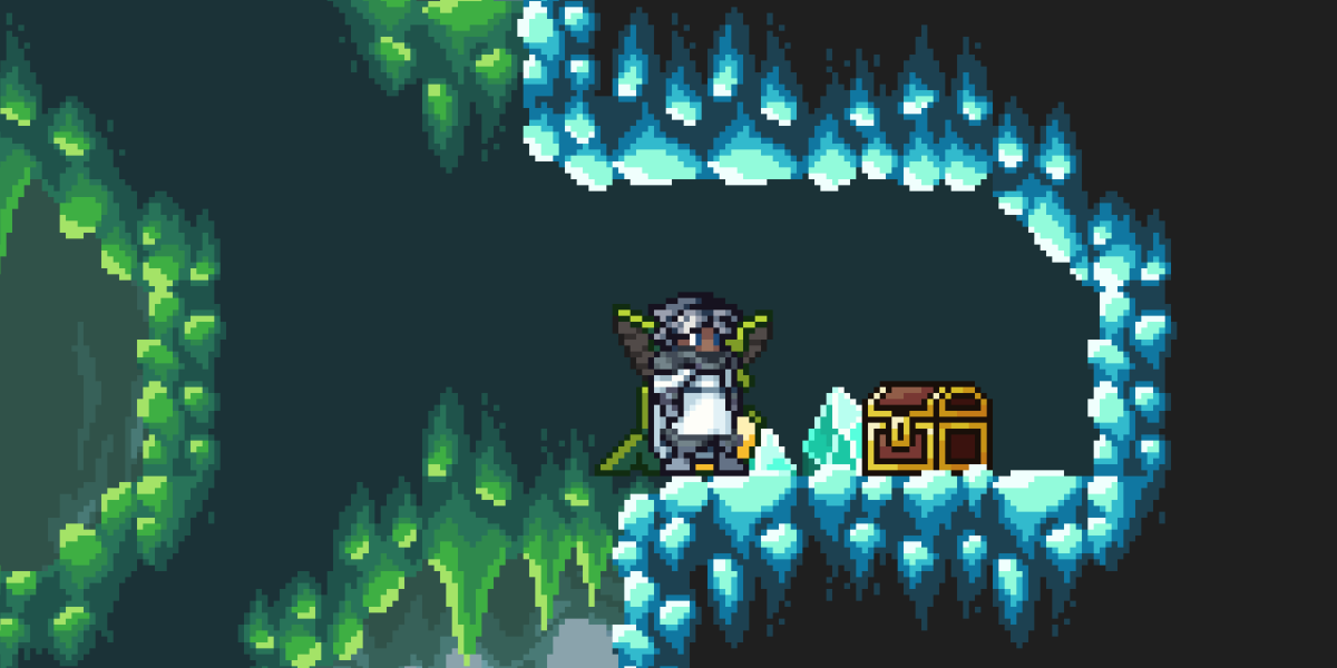 벽을 부수고 왼쪽 구역으로 넘어가면 어두운 동굴이 나오며 왼쪽 끝으로 가보면 상자가 하나 있다.