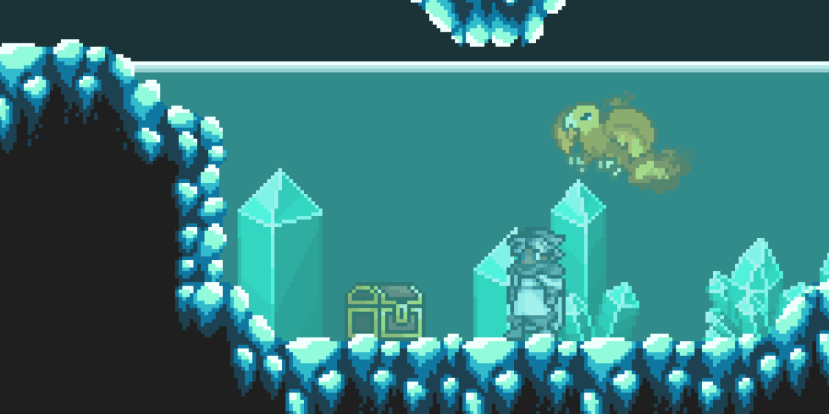 물 속 왼쪽에 상자가 있는데 아래쪽 돌을 왼쪽으로 움직인 후에 2단 점프로 접근할 수 있다.