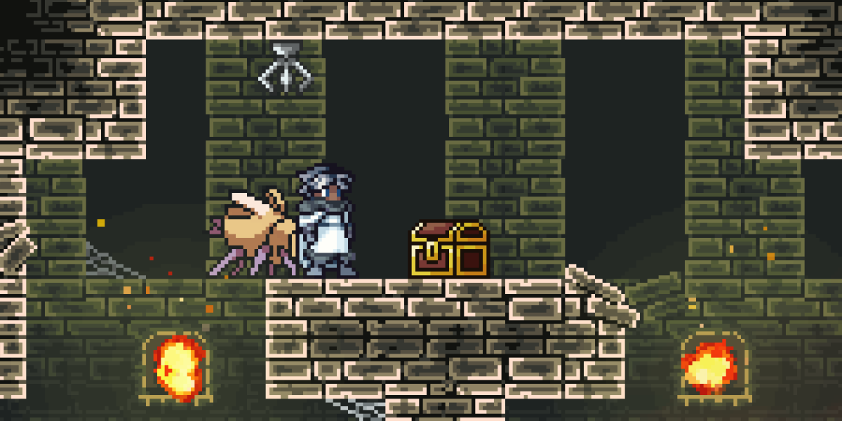 위쪽에 갈고리가 하나 있는데 몬스터를 이용해 갈고리를 끌어당기면 상자가 있는 곳으로 올 수 있다.