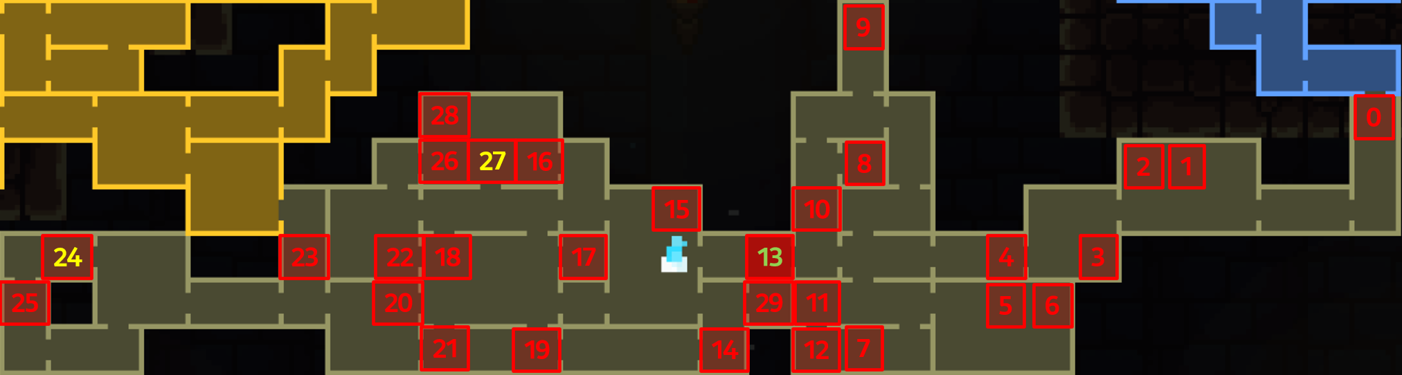 18번 위치의 벽을 다시 위로 올리고 이 길을 통해서 위로 올라가 26번 위치 가는 길에 있던 레버를 당기자.
