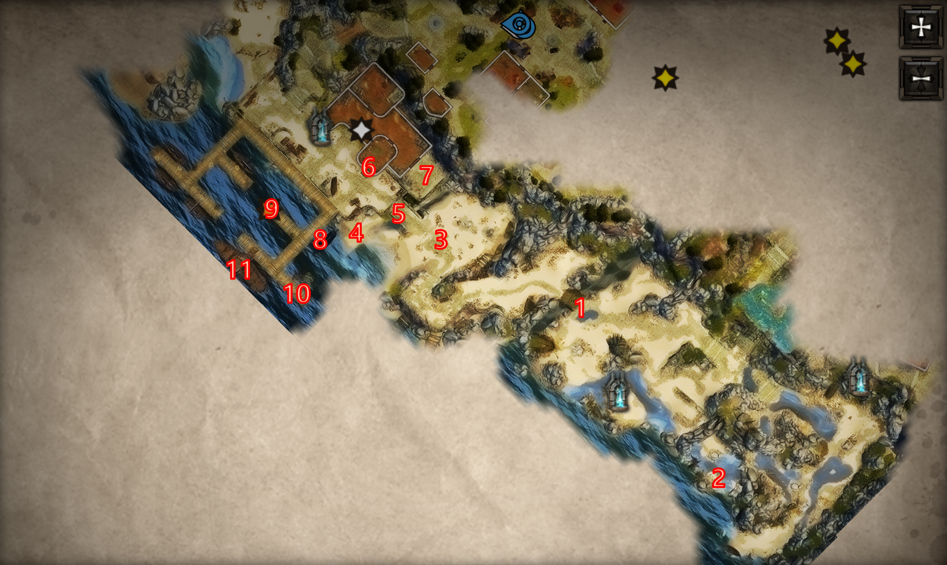 항구 출입구에 도착하면 일행은 900 경험치를 얻게 된다.