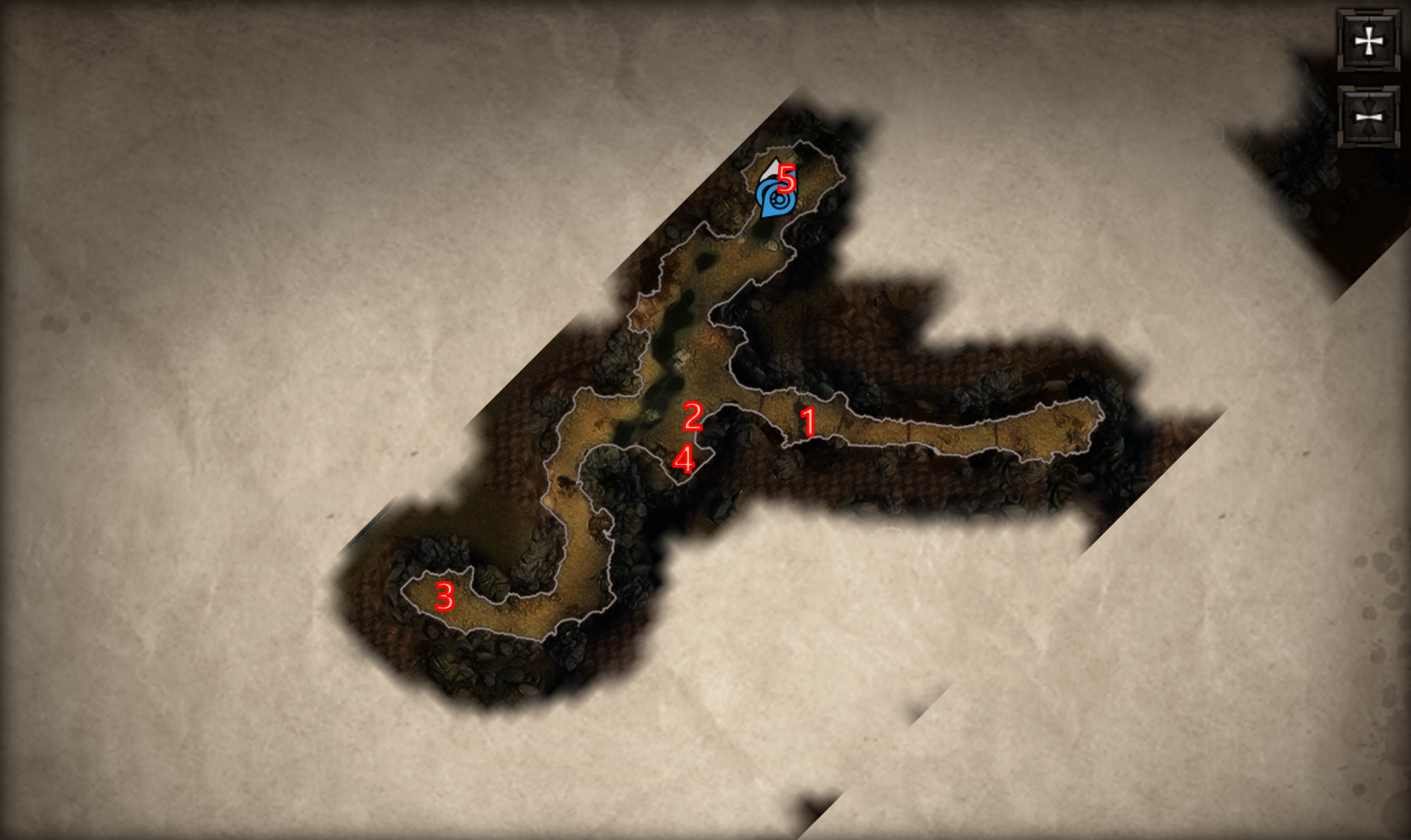사이실 마을에서 무덤을 통해 지하로 내려왔다면 해당 위치에서 시작한다.