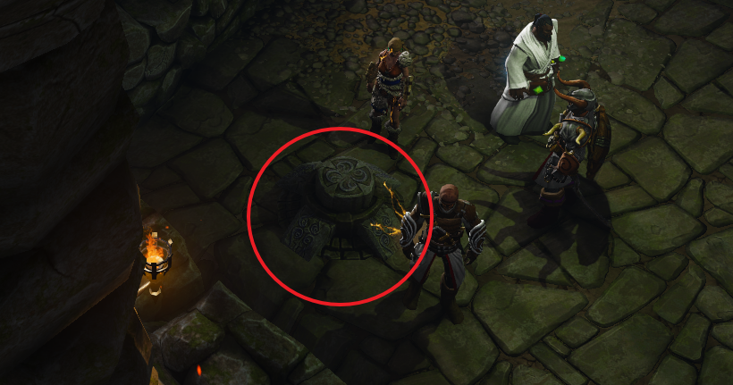 적들을 쉽게 처리하기 위해서는 해골 궁수가 있는 위치까지 파티원을 은신 상태로 이동시킨 후