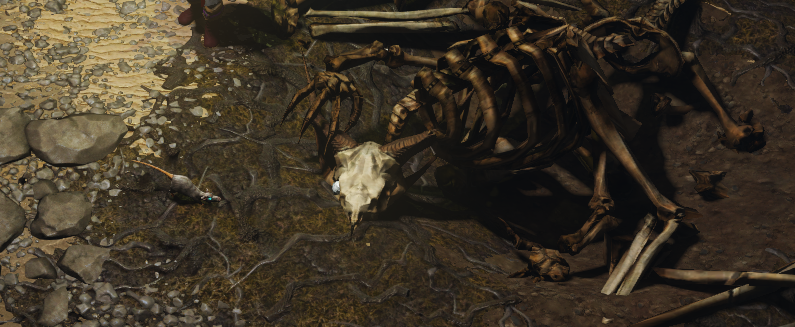 길을 따라 가다보면 드래곤의 시체가 있으며 눈에 다이아몬드가 있으니 챙겨가자.