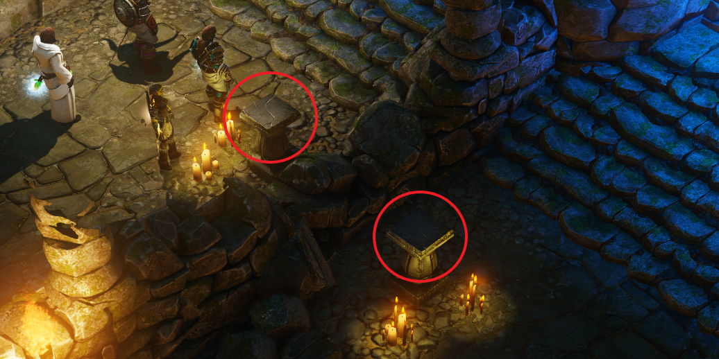 석판에 펜던트 하나씩을 올려두면 장막이 해제되고 들어가 볼 수 있다. (645 경험치 획득)