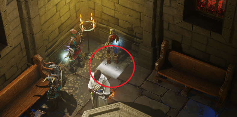 교회 왼쪽 바닥에 쪽문을 하나 발견할 수 있다. (통찰 필요)