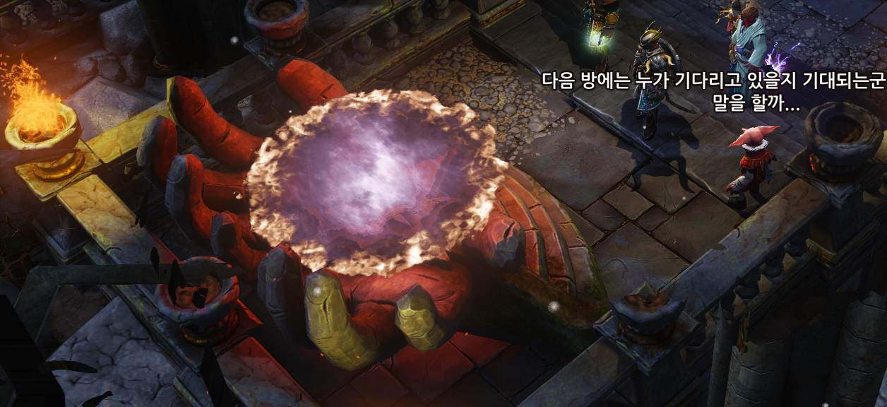 시작부터 불구덩이 주문이 날라오는데 일행이 같이 있는 경우 몰살당할 수 있으니 주의해야 한다.