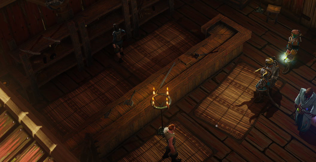 오른쪽 사각 테이블에 앉은 세명은 중기병과 명사수 관련된 아이템들을 판매하고 있다.