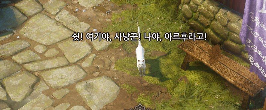 입구 위쪽에 고양이로 변해있는 아르후가 있다.