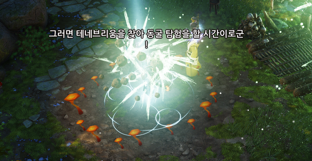 다시 동굴 바깥으로 나와서 버섯 한가운데 위치한 후 마라디노의 비밀문서를 읽자.