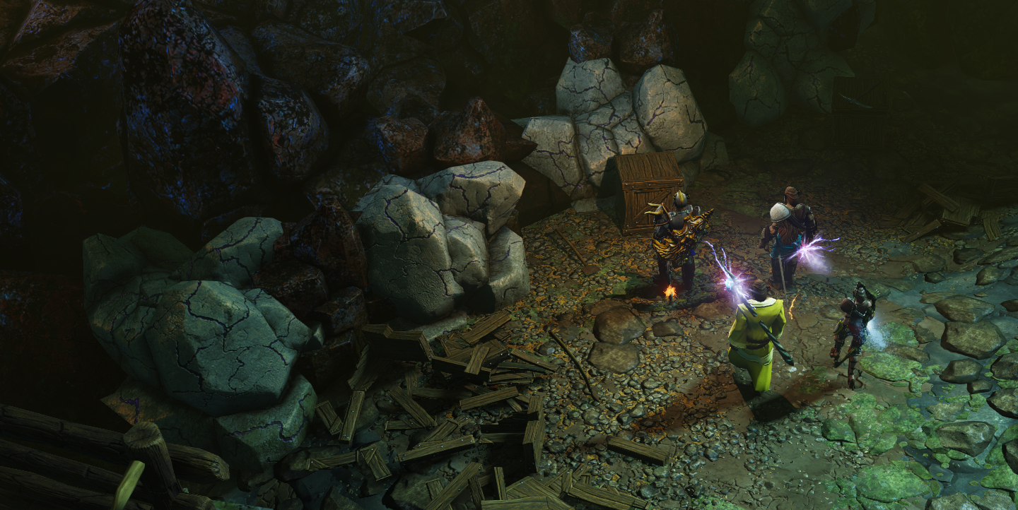 동굴 왼쪽 윗편에는 테네브리움 광석이 많이 있다.