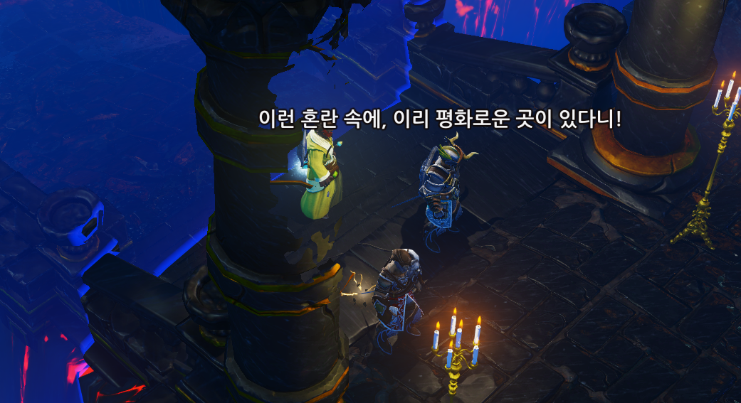 대화가 끝나면 뒤쪽에서 죽음의 기사들을 소환하고 사라질 것이다.