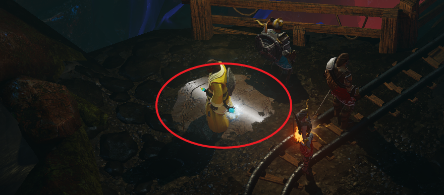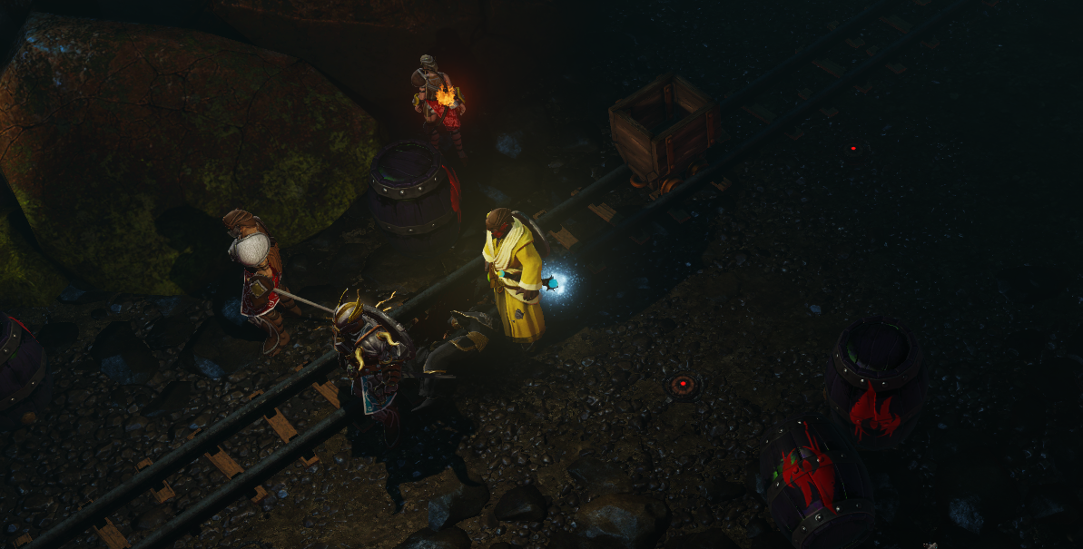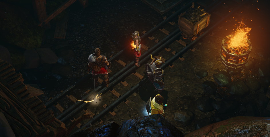 웨이포인트를 이용해서 일행을 광산 지하로 이동시켜서 같이 움직이면 될 것이다.