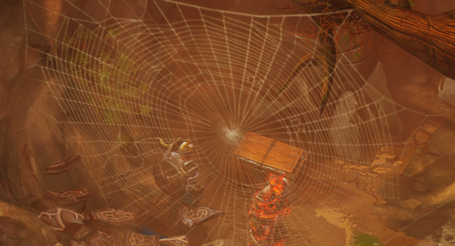 거미 처치 후 위쪽에 거미알과 거미줄이 보이고 안쪽에 상자가 하나 있다.