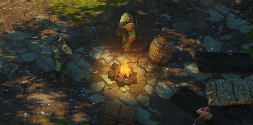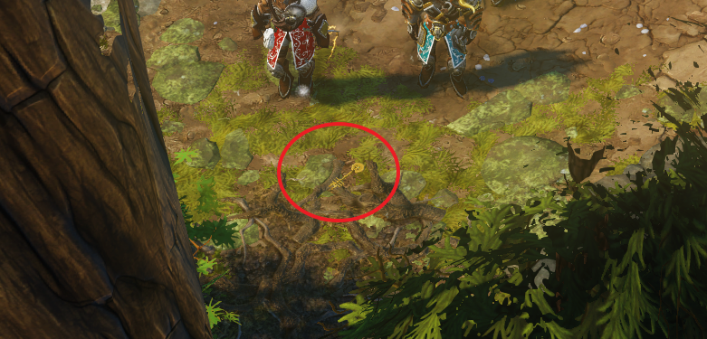 오크를 처리하고 야영지 상자가 보이는데 아래쪽으로 조금만 내려가면 열쇠가 보일 것이다.