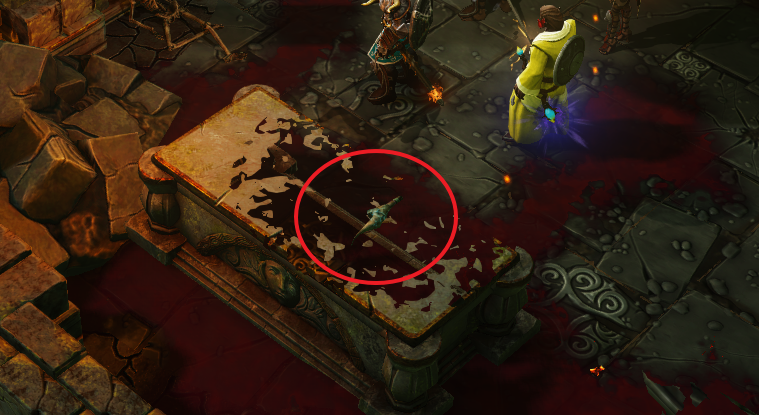 바드 일행이 있던 곳에서 더 오른쪽 끝으로 가보면 숨겨진 바닥을 발견할 수 있다. (통찰 필요)