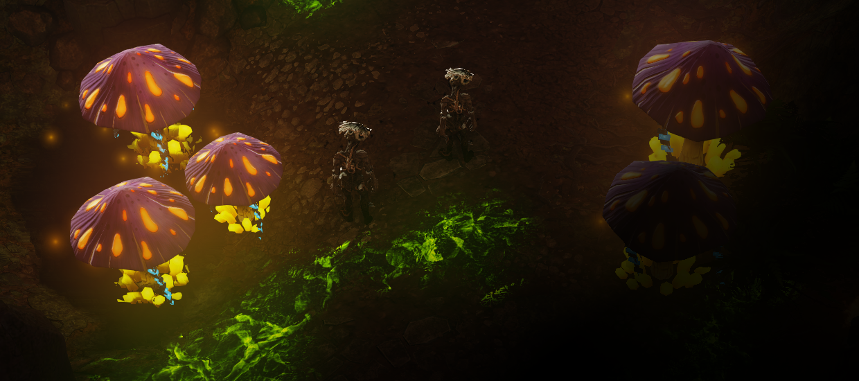 굴 안에는 버섯과 감염된 경비병들이 있다.