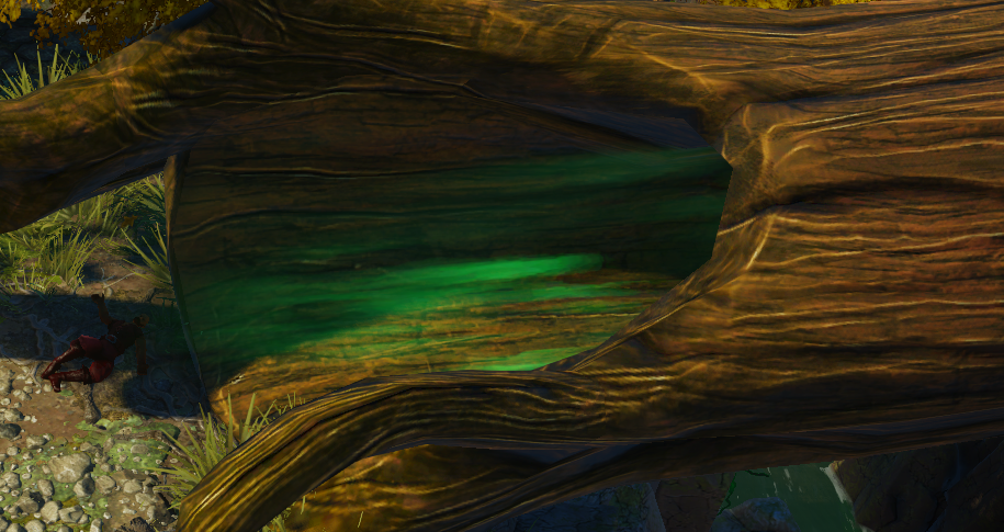해당 통나무를 통과하기 위해서는 보호하는 부적이 필요하여 지금은 갈 수 없다.