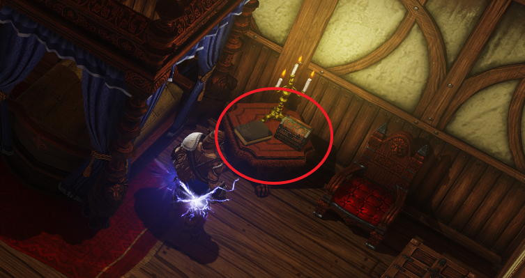 ※ 촛대가 있는 방 왼쪽에 상자가 하나 있는데 상자를 열려면 물음에 답해야 한다. 정답은 이카라이지만 바로 대답할 수 없고 헌터스 엣지에서의 사냥 퀘스트를 완료하는 시점에 해당 답을 할 수 있을 것이다.