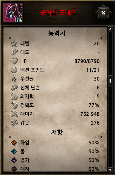 공허의 드래곤은 위와 같은 능력치를 가지고 있으며