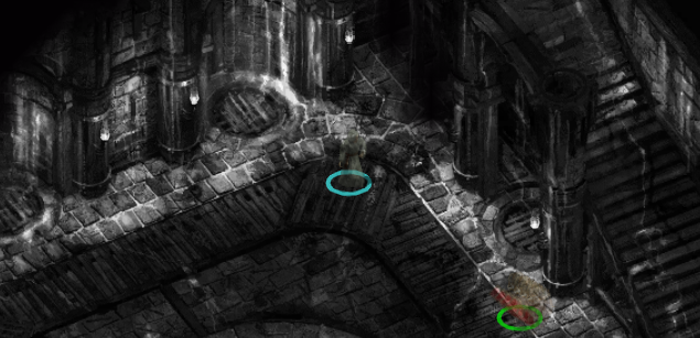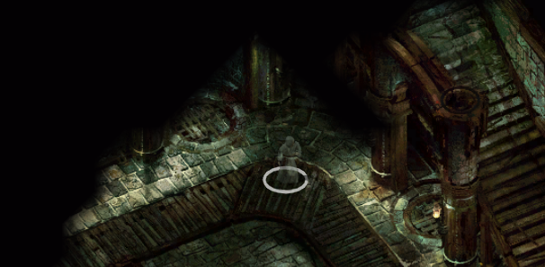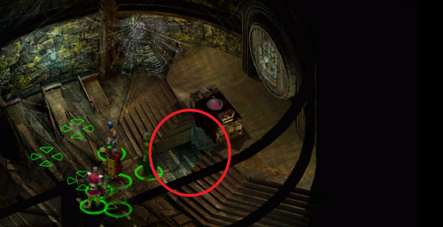 서쪽 탑에서 레버를 당겼다면 오른쪽 위에 내려가는 계단이 생겼을 것이다.