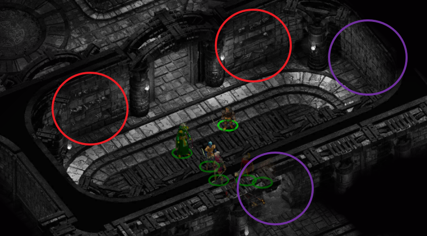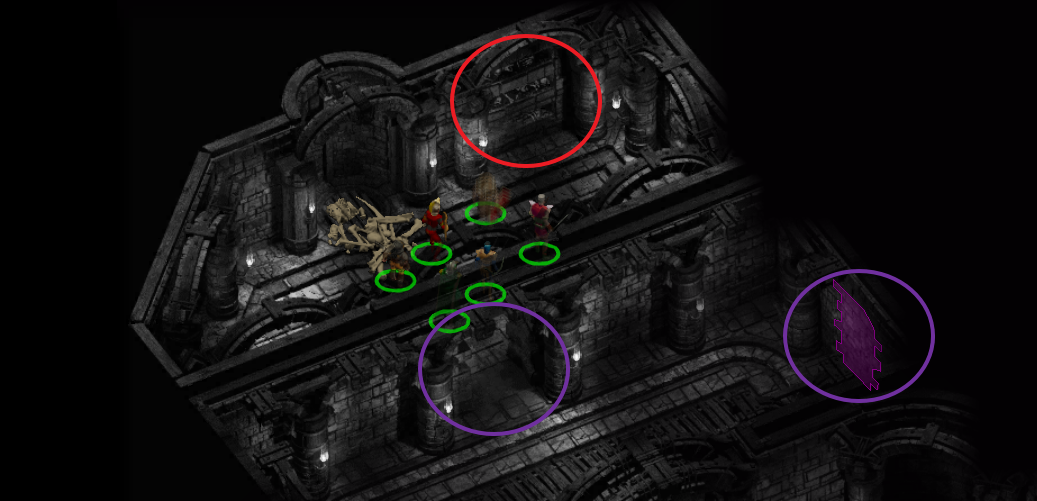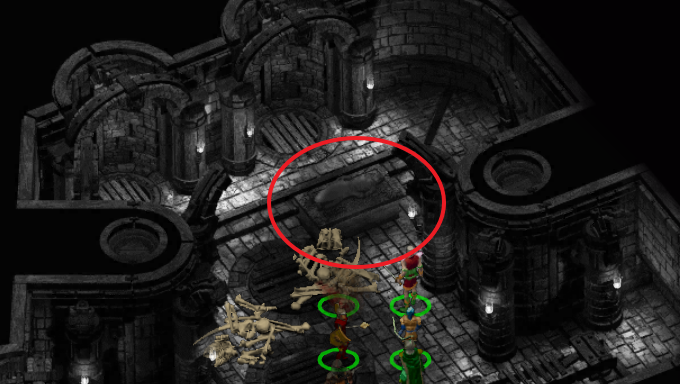 이 중 위쪽 비밀 문을 열면 언데드가 하나 있고 무덤 3개에서 약간의 아이템을 챙길 수 있다.