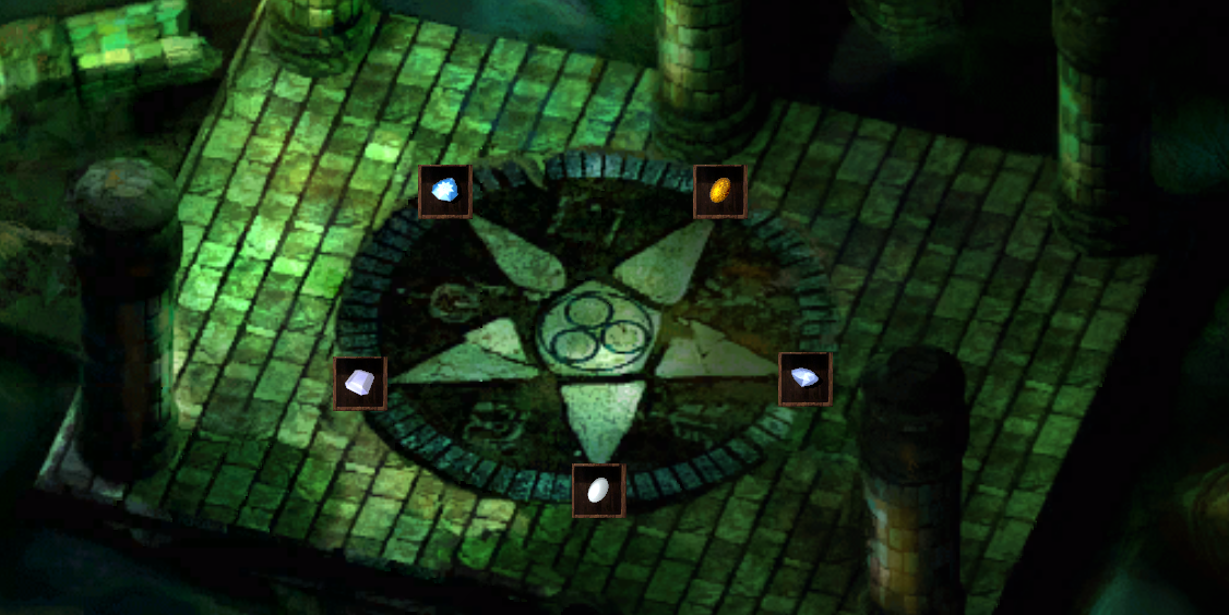 알맞은 보석을 각 위치에 올려놓으면 되며 잘못 올려놓을 경우 코르누곤이라는 악마들이 나타나 공격해온다.