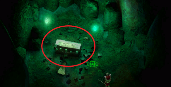 적들 처치 후 위로 올라가면 관이 하나 있다.