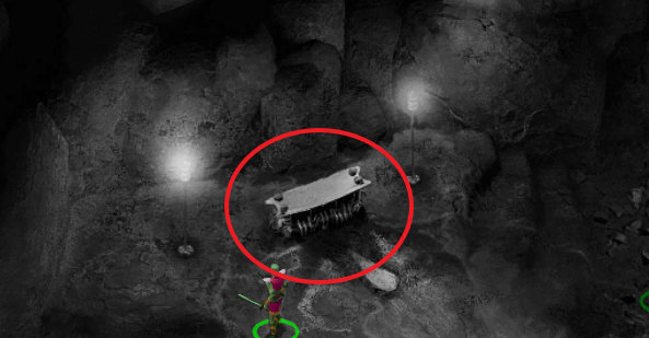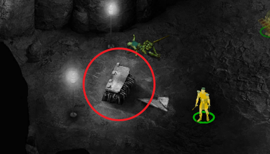 적 처치 후 위쪽 상자에서는 흠이 있는 파이어 에거트 보석(퀘스트 아이템)을 얻을 수 있다.