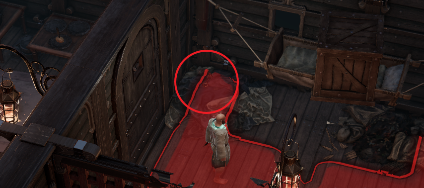 문을 열고 나가서 오른쪽 방을 살펴보면 시체 한 구를 발견할 수 있다.