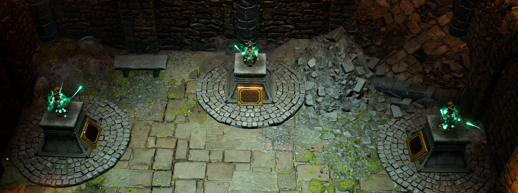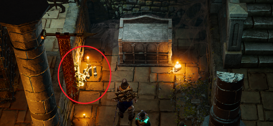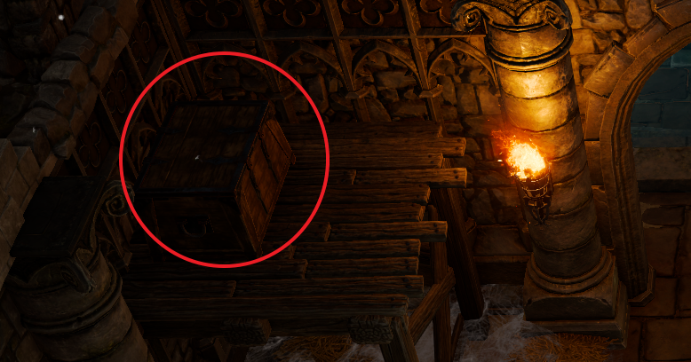 오른쪽 석상 부근에는 낡아빠진 궤짝이 있으며 임의의 아이템을 얻을 수 있다.