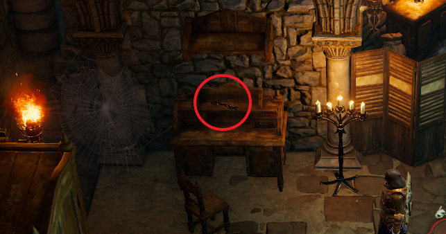 우선 왼쪽 윗편 책상에서 정교한 우리 열쇠를 얻을 수 있다.