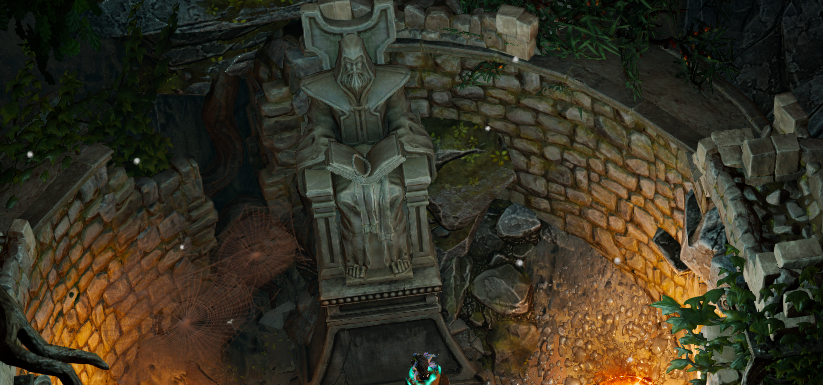 고대의 통로 중간 부근에는 양 옆에 석상이 하나씩 있을 것이다.