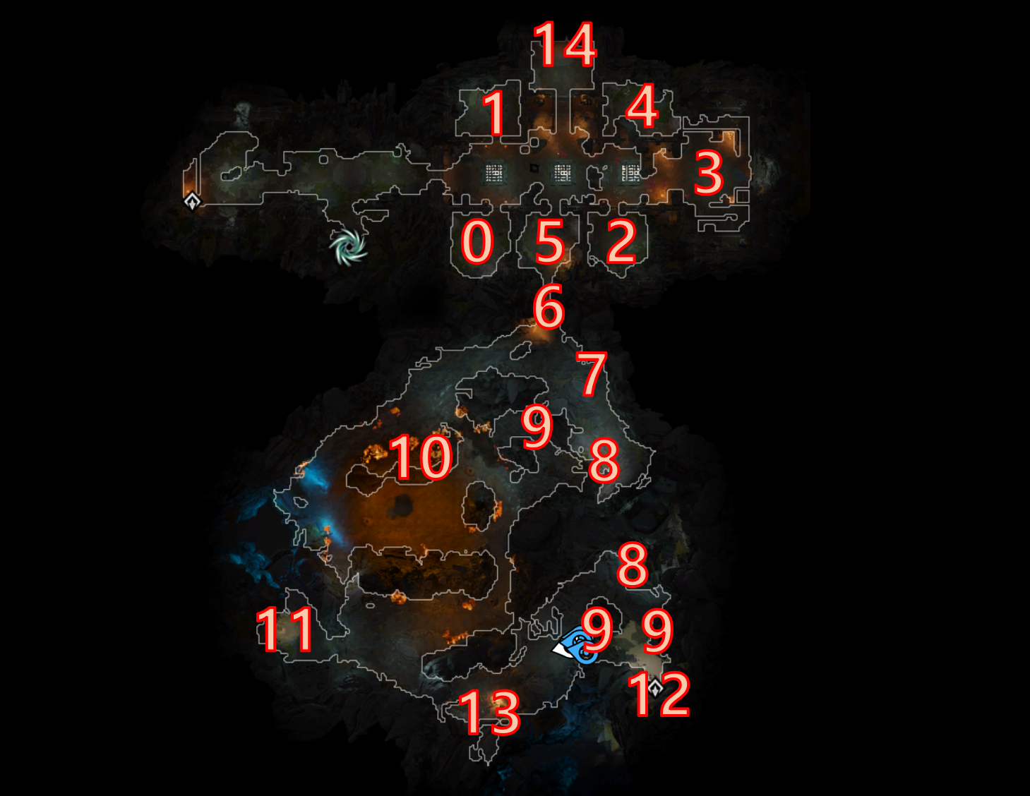 지하 터널 가운데 지역에 살펴보면 화염 달팽이들이 보일 것이다.