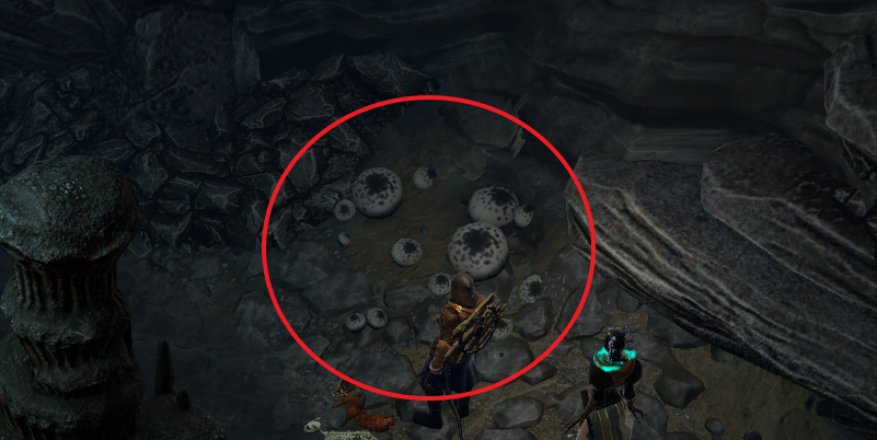 오른쪽 절벽 부근에서는 그물코버섯을 채집할 수 있다. (다른 곳에도 있으니 참고만 하자)