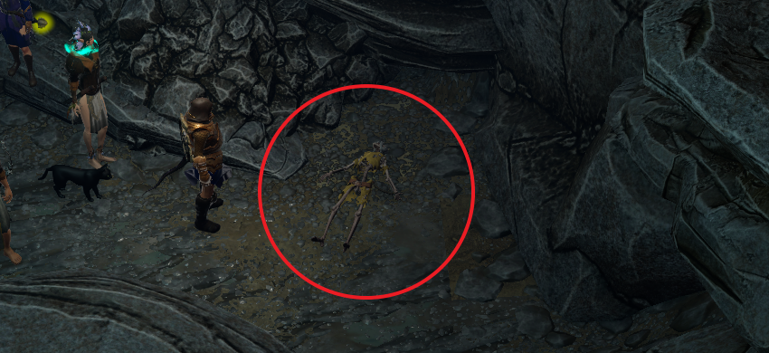 6번 위치에서 오른쪽으로 조금만 가보면 엘프 해골이 있으며 약간의 아이템을 챙길 수 있다.