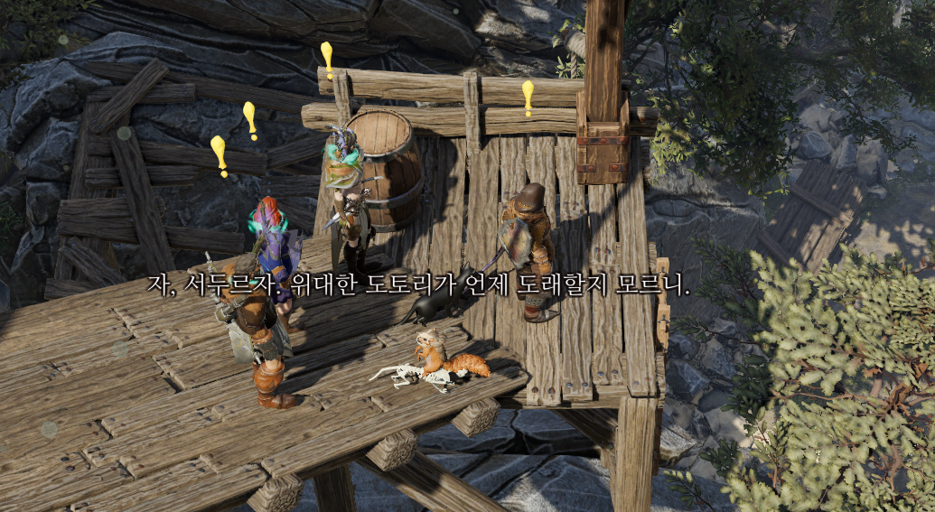 마지스터가 적대화되어 있는 상태인데 일행은 고지대에 위치하고 있으니 전투에 유리할 것이다.