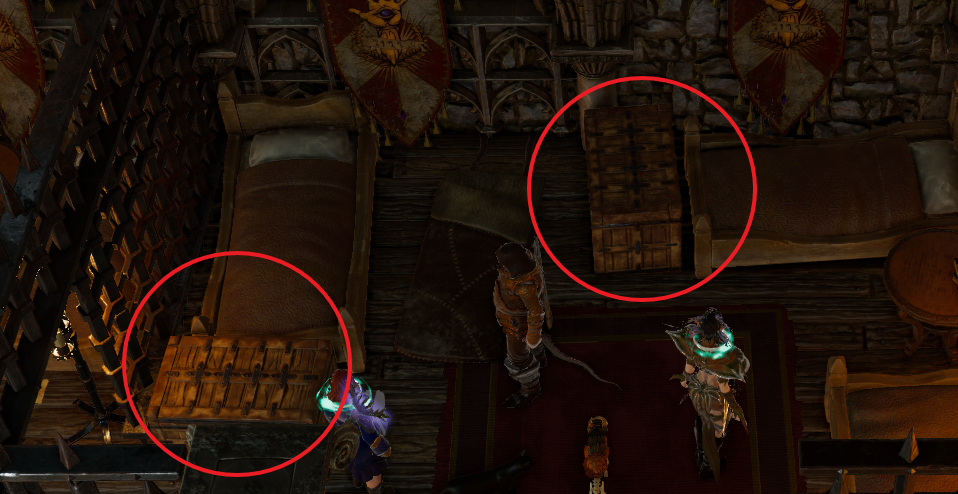 위쪽 모서리에는 장식된 상자가 있는데 순간이동 주문을 이용하여 바깥으로 빼서 열어볼 수 있다.