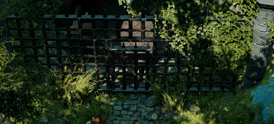 위쪽에 보이는 철문은 낡은 폐허로 연결되는 입구이다.