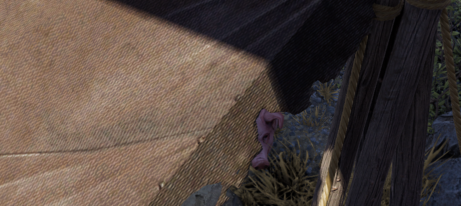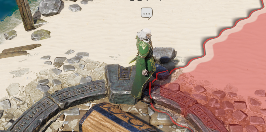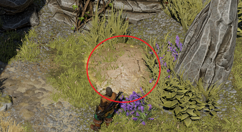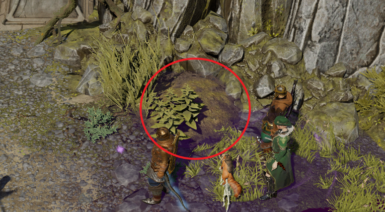 오른쪽 위편에 버려진 야영지를 찾을 수 있으며 가레스와 사전에 이야기하였다면 해당 위치에서 찾을 수 있다.