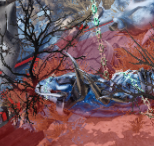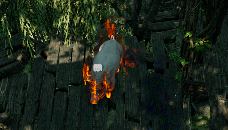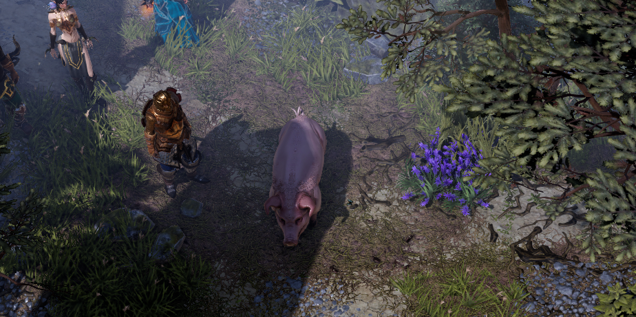 늪지대 중앙 부근에 불타고 있는 돼지들을 발견할 수 있다.