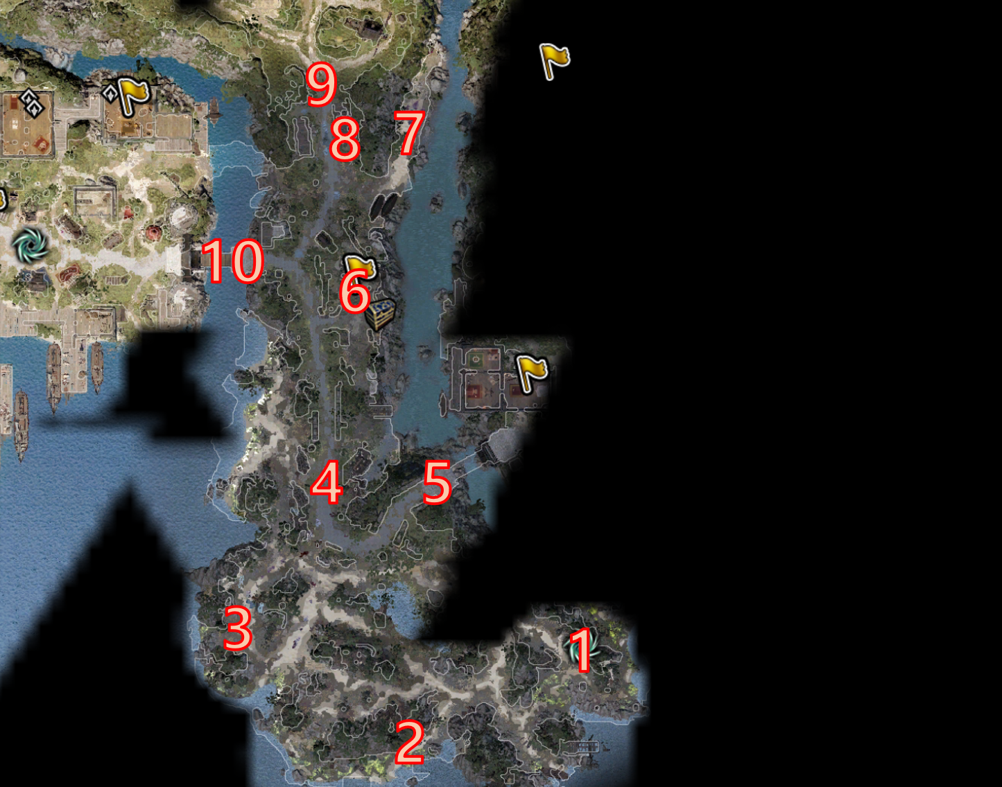 사신의 해안으로 도착했다면 다음 위치에서 시작하게 된다.