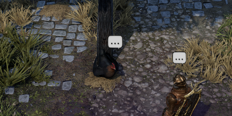 이후 검은색 삐약이에게 말을 걸면 펫처럼 일행을 따라다닐 것이다.