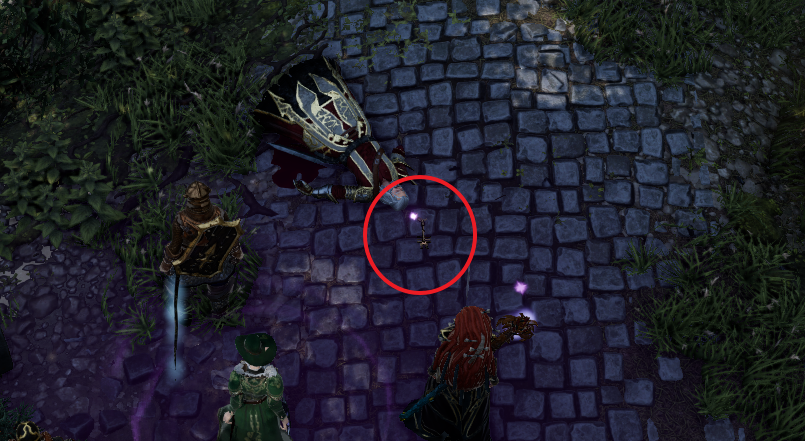 죽은 시체들 중간에 바닥을 살펴보면 열쇠가 하나 있다.