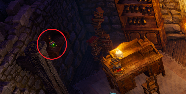 위쪽 문을 열고 들어가면 안에 다양한 물약이 있는데 그 중 퀘스트와 관련된 마녀의 물약을 챙겨두자.