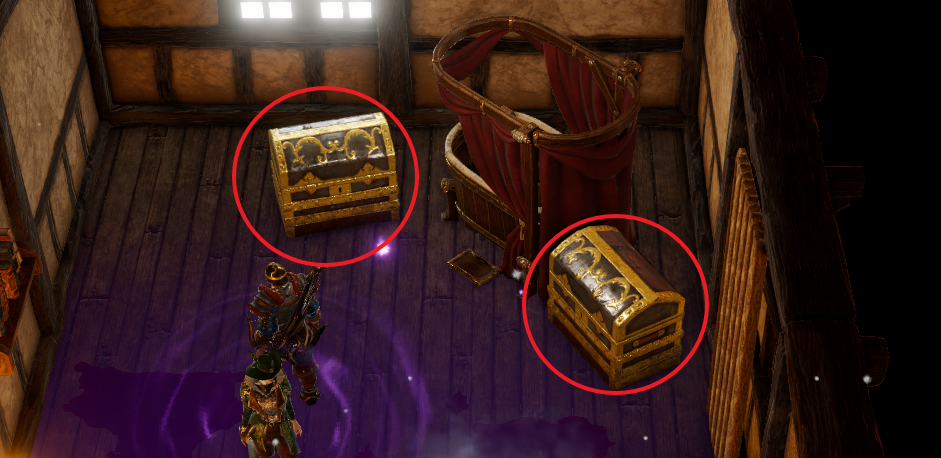 자물쇠 따기로 따면 약간의 금화를 챙길 수 있다.
