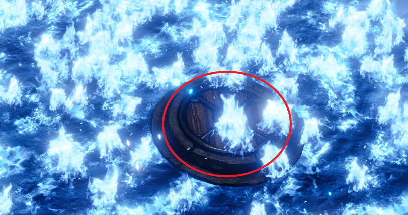 아래쪽에는 불 길에 휩싸인 상자를 하나 발견할 수 있다.