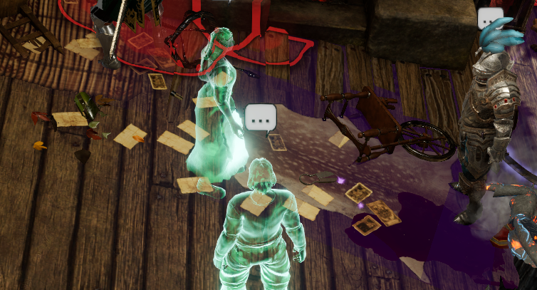 영혼의 시야 기술을 통해서 가레스의 부모님 영혼을 볼 수 있고 증거에 대한 이야기를 들을 수 있다.