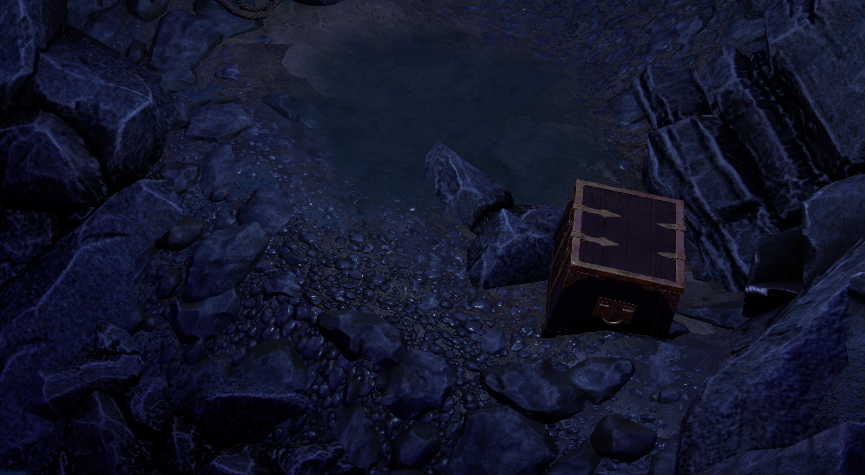 동굴 시작 위치에서 위쪽에 보면 난파선 같이 생긴 곳에 함정과 상자 하나가 있는 것을 알 수 있다.