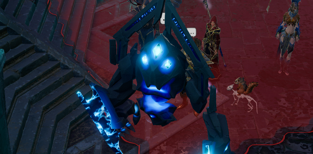 화신의 피해를 어느정도 입히다보면 근원의 거인으로 변하여 공격해오는데 데미지가 좀 쎈 편이니 주의해야 한다.